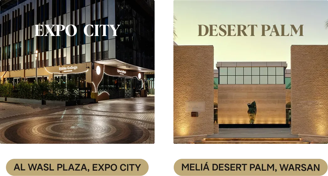 Step into Rubia Gallega Spanish Steakhouse, situated in Al Wasl Plaza, Expo City and Meliá Desert Palm. Our passion for authentic Spanish flavors takes center stage, offering you a true taste of Galicia - the soul of Spanish gastronomy.